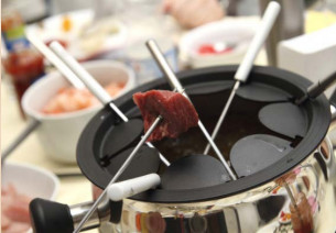 Unser Fondue Chinoise bereiten wir mit frisch geschnittenem Fleisch zu: